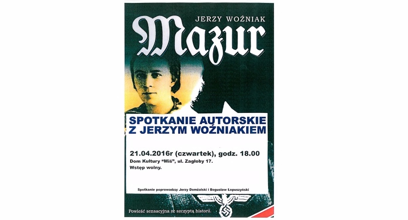 21 kwietnia zapraszamy do Domu Kultury „Miś” na spotkanie autorskie z Jerzym Woźniakiem. Autorem powieści sensacyjnej Mazur.